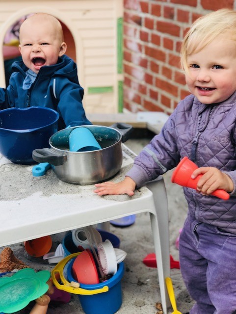 Tryghed, udvikling, bevægelse, fagtesange, nærvær, anerkendende kommunikation, musik, ro, ture ud af huset, smil og latter er en høj prioritering i hverdagen her.